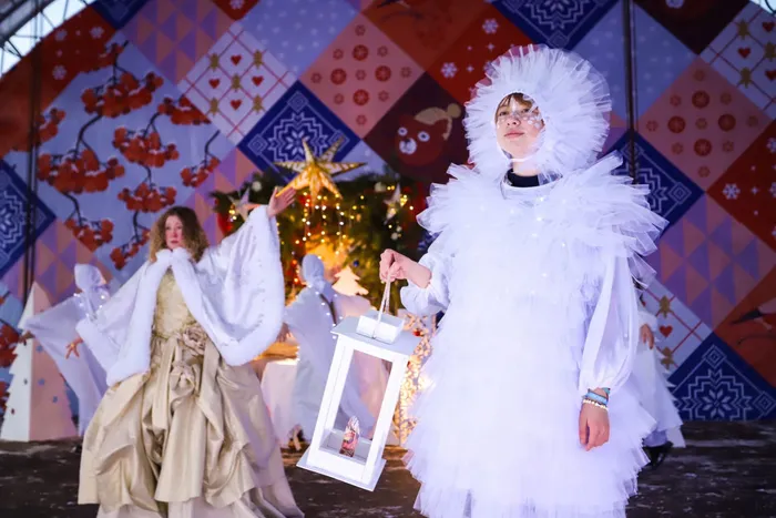 На главной сцене города детский театр «Коляда» под руководством Ксении Боярских представил зрителям театральное действо с интерактивной программой «Путешествие в Рождество».