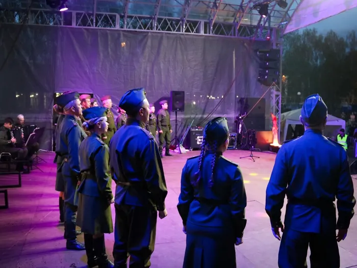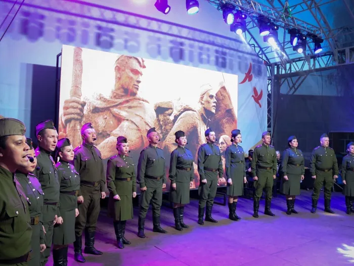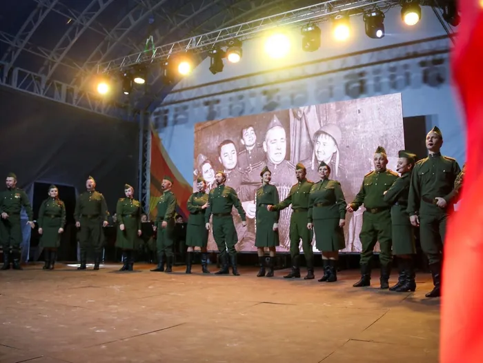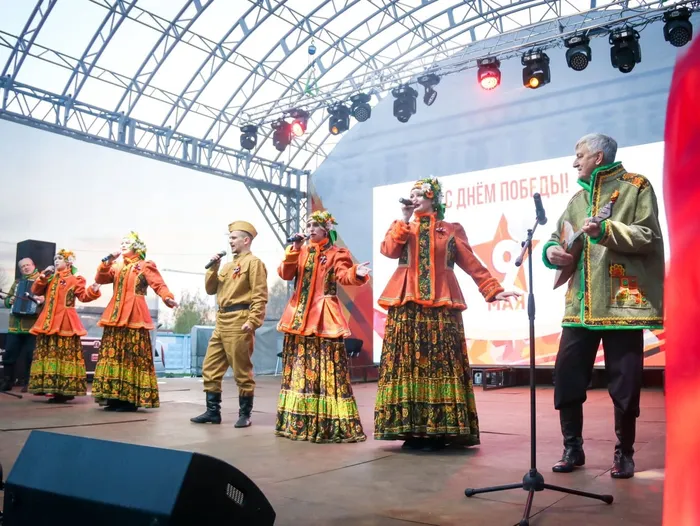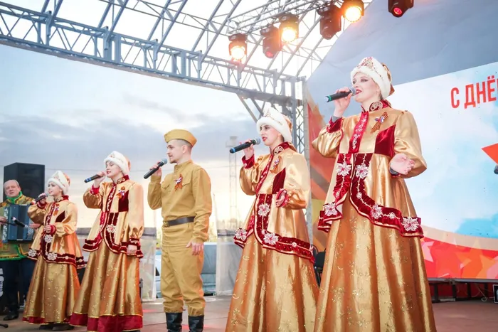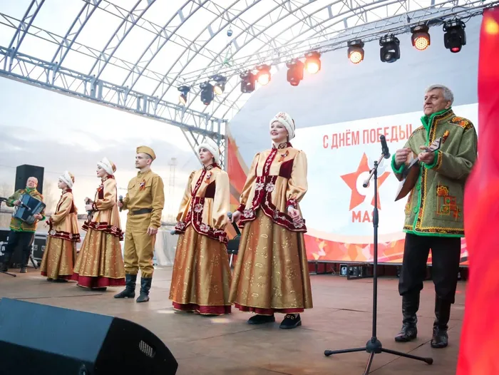 В 19:00 в сквере «Олимпийский» началась вечерняя программа - выступление профессиональных артистов: фольклорный ансамбль «Услада» и Государственный Астраханский ансамбль песни и пляски.