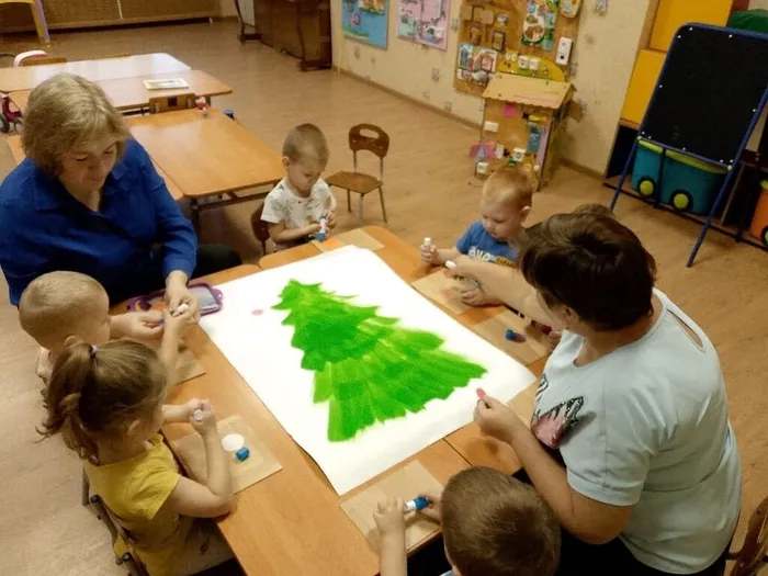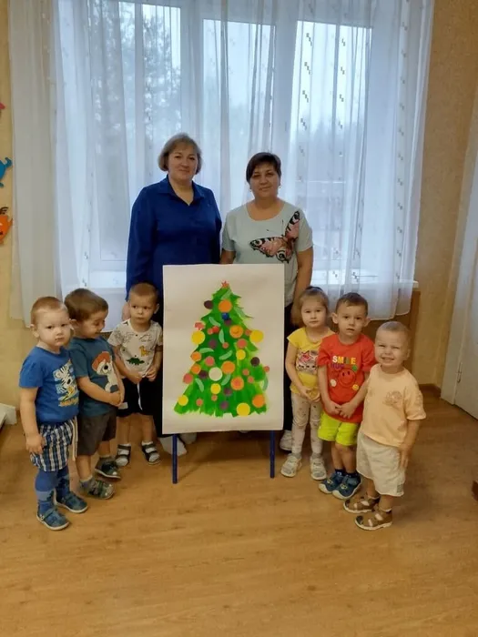 В ходе мастер-класса дети с большим увлечением создали "Елочку-красавицу". Используя метод аппликации, нарядили её разноцветными шарами.