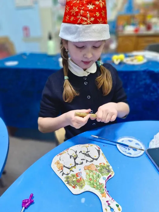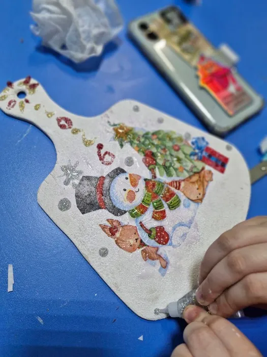 Ребята в творческой атмосфере расписывали разделочные доски в технике декупаж — аккуратно наклеивали изображения, добавляли узоры и оформляли композиции.