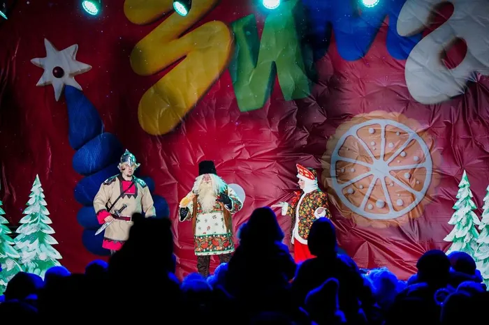 На главной сцене города состоялся сказочный спектакль от самодеятельных артистов и сотрудников ЦДК им. Нариманова «Как богатырь Новый год спасал». Новогодние песни прозвучали от вокальной студии «Созвездие».