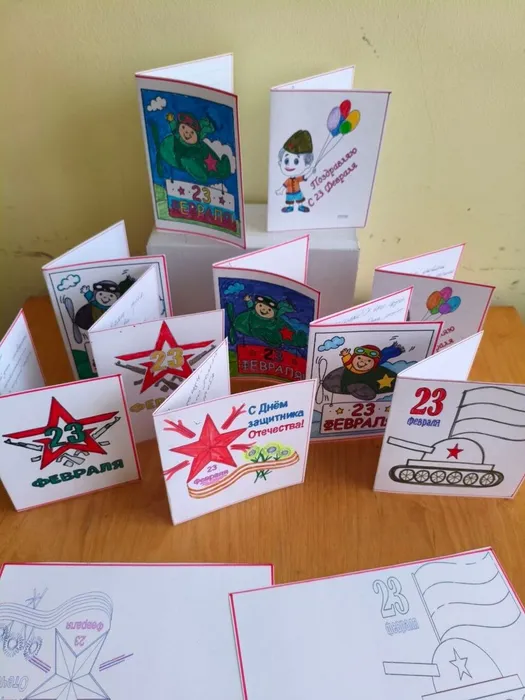 В преддверии предстоящего праздника «Дня защитника Отечества» дети своими руками изготовили поздравительные открытки и написали трогательные слова для наших солдат. Мы уверены, что они согреют солдатские сердца в тех тяжелых условиях, в которых они сейчас находятся, и станут поддержкой для солдат, которые рискуя жизнью, охраняют и защищают мир и порядок в нашей стране.