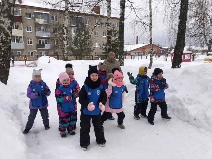После энергичной разминки, дети соревновались в метании в цель, в лыжной гонке, беге и забрасывании шайбы в ворота.