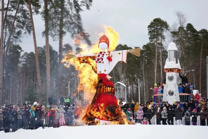Праздник завершился сожжением чучела, символизирующим уход зимы.