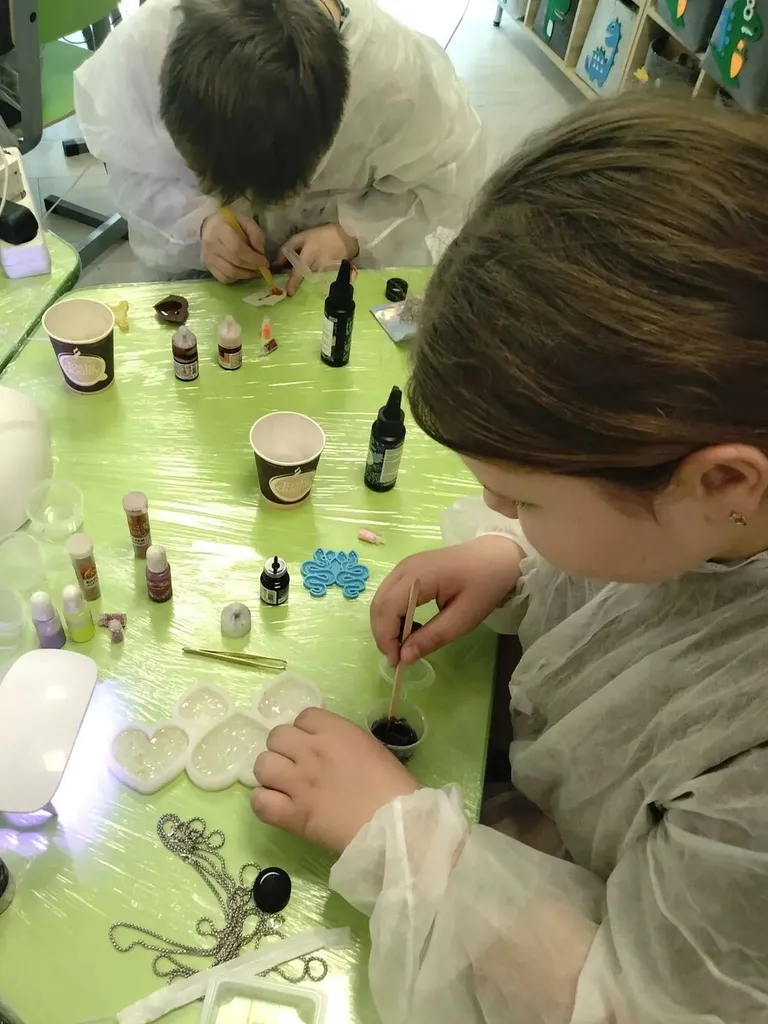 Ребята научились создавать из эпоксидной смолы ювелирные украшения: кулоны, серьги и брелки, украсив их различным декором.