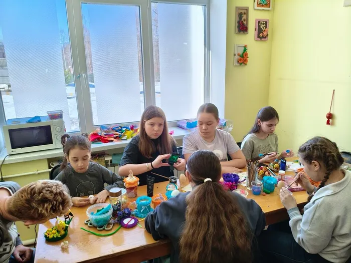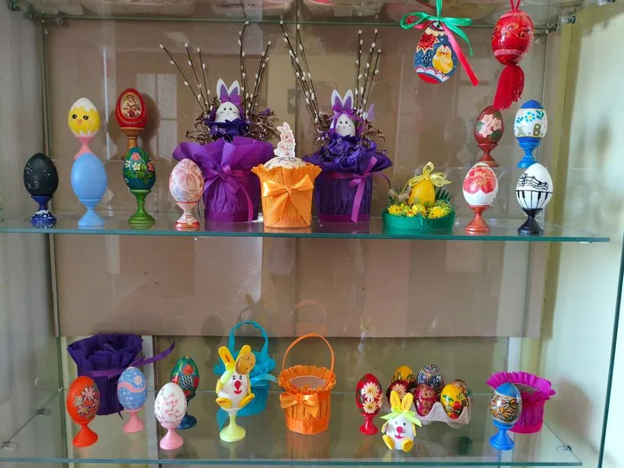 Праздничная пасхальная тематика позволяет придумывать понятные даже малышам сюжеты с курочками и расписными яйцами, цветами и солнышком. Чем старше ребенок, тем сложнее и интереснее может быть композиция. У наших мастеров большая фантазия, и множество творческих идей.