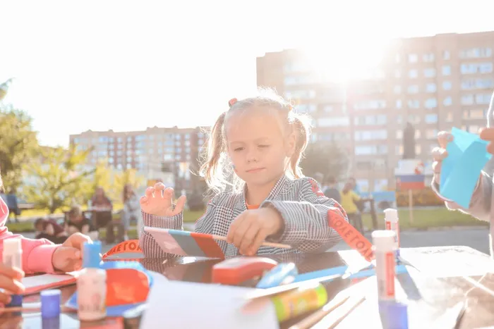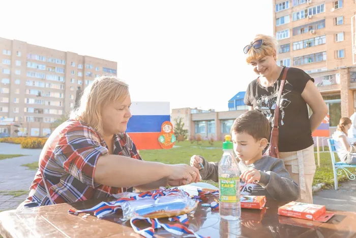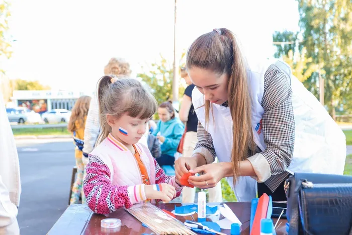 Сотрудники Дома Культуры им. Нариманова представили гостям мероприятия разнообразные мастер-классы: аквагрим, живопись на дощечках, поделки из ленты «Триколор», рисование на асфальте.