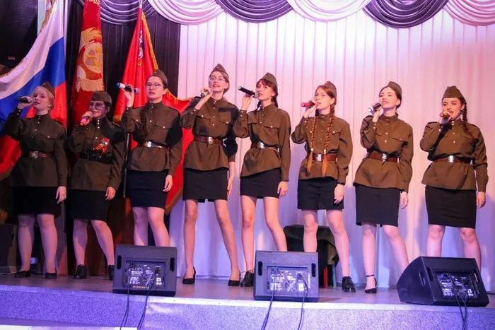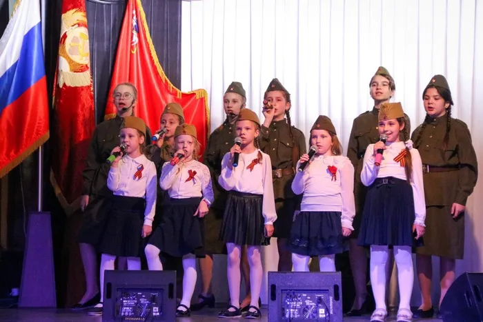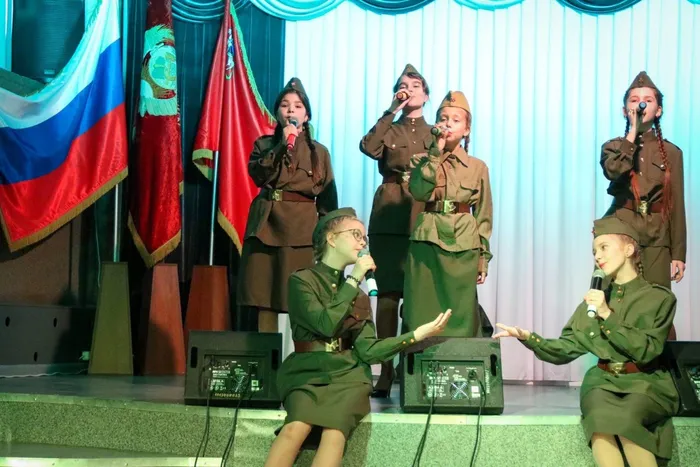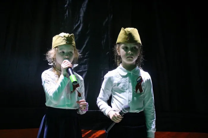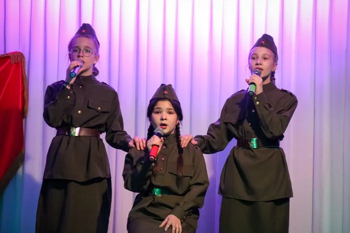 Юные артисты представили на суд зрителей военные песни разных лет. Концертную программу разбавляли стихотворениями и хореографическими зарисовками.